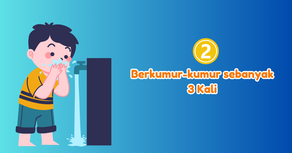 Masukkan air ke dalam mulut dengan kedua tangan. Gerak-gerakkan air di dalam mulut lalu keluarkan sebanyak 3 kali.