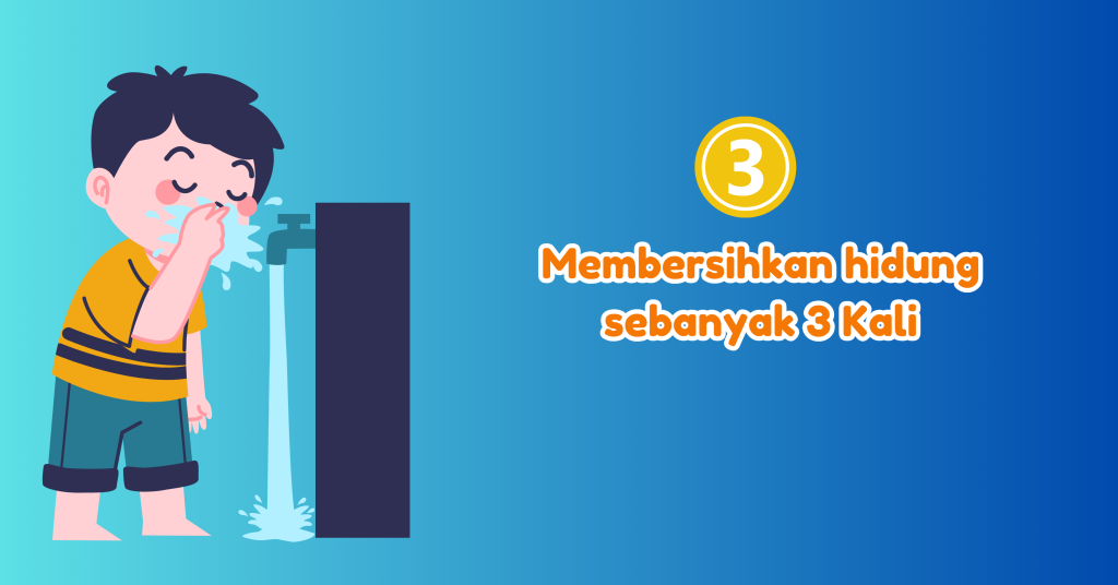 Memasukkan air ke dalam hidung dengan tangan kanan. Keluarkan air yang ada dalam hidung dengan tangan kiri sebanyak 3 kali.