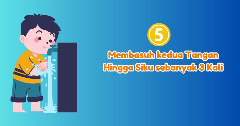 Basuh tangan kanan dan kiri sampai siku. Lakukan itu sebanyak 3 kali.
