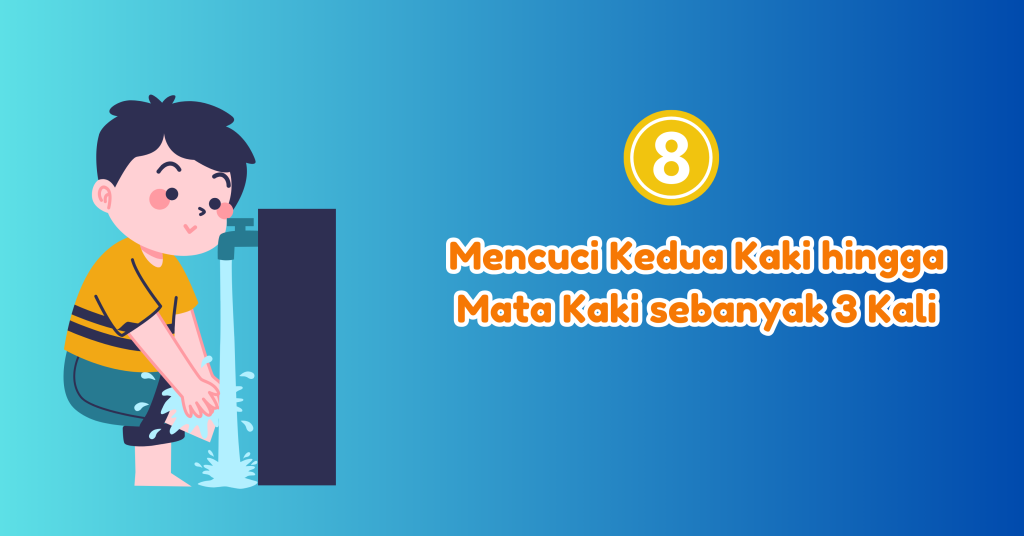 Basuh kaki sebelah kanan dan kiri sampai mata kaki, sebanyak 3 kali.